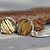 Eichenbalkens. Die Hölzer sind in Silber gefasst. In die Holzoberfläche wurde eine Linie aus